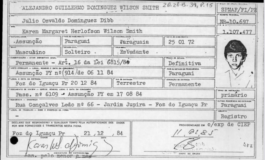 La publicación está firmada por Lúcio de Castro y cuenta el lado oscuro de la familia Domínguez Dibb, incluido un precoz prontuario de Alejandro Guillermo Domínguez Wilson Smith quien a los 13 años ya tuvo un proceso abierto por la Policía Federal (PF) brasileña, por producción de documentos públicos de contenido falso en el año 1985.